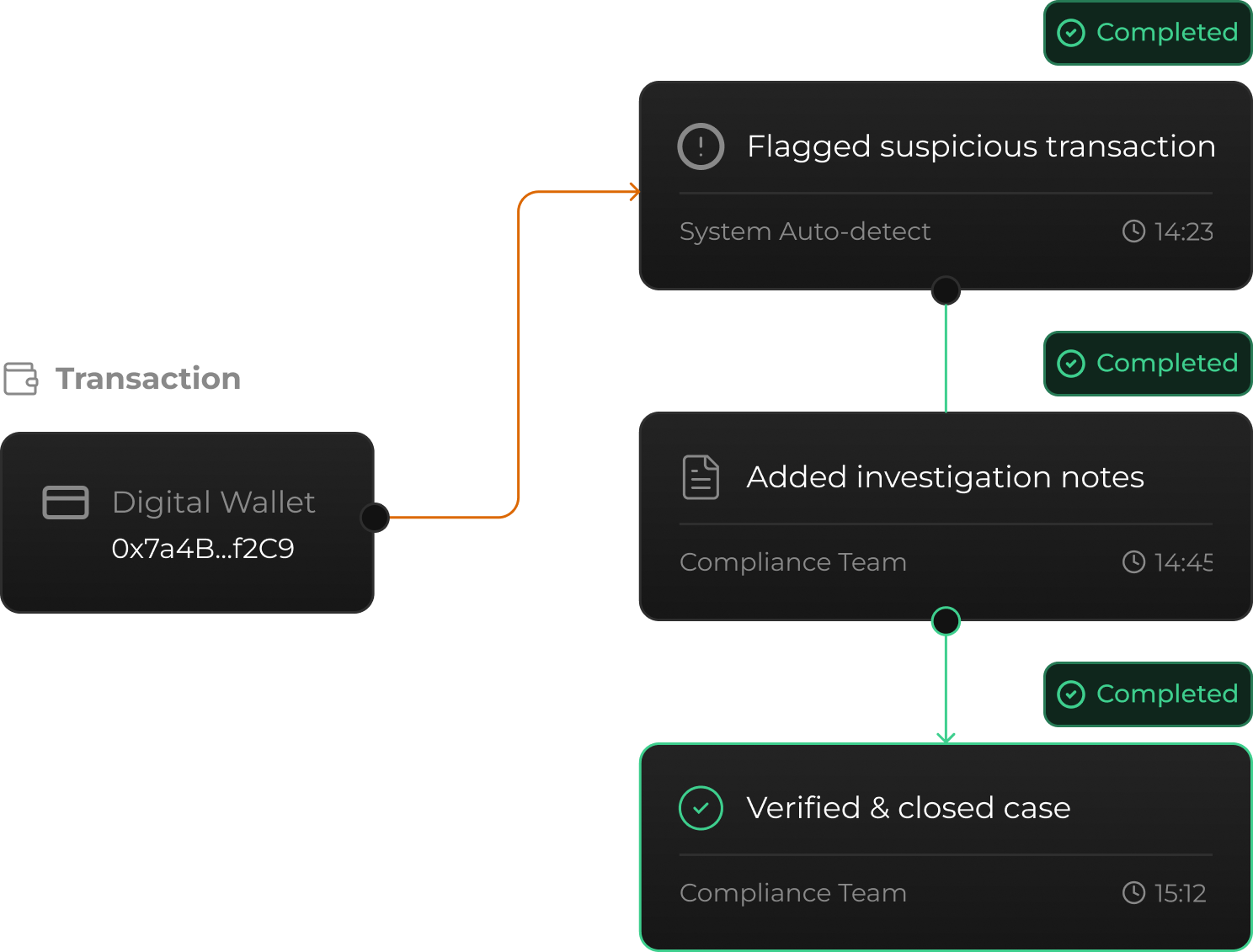Investigations with full audit trails, so every “what happened here”? has an answer.